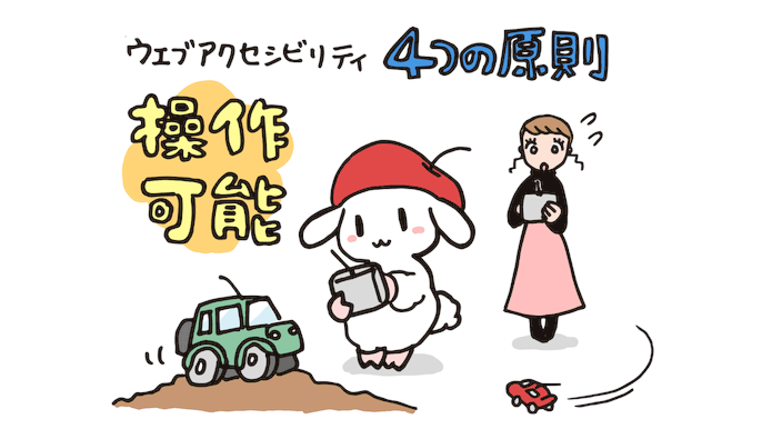 こんにちは!kanappleです。 アクセシビリティ4つの原則の前回の続きです。 1. 知覚可能 2. 操作可能 3. 理解可能 4. 堅牢 今回は操作可能についてです。 2.操作可能 操作可能とは、利用者がウェブページ内にある...